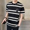 Koreanische kontrastfarbene gestreifte T-Shirts Herrenbekleidung Lässig Rundhals Sommer Basic Kurzarm Amerikanische Retro-Pullover