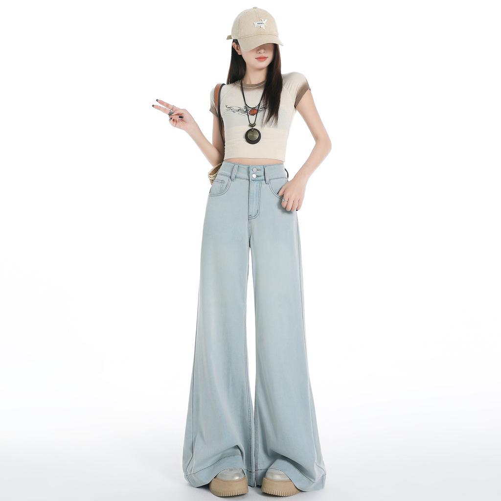 Helle Tiansi Schlagjeans mit weitem Bein für Damen Sommer Neu High-Waist Locker Drapierend Eisseide Gerade Bein Bodenlange Hose