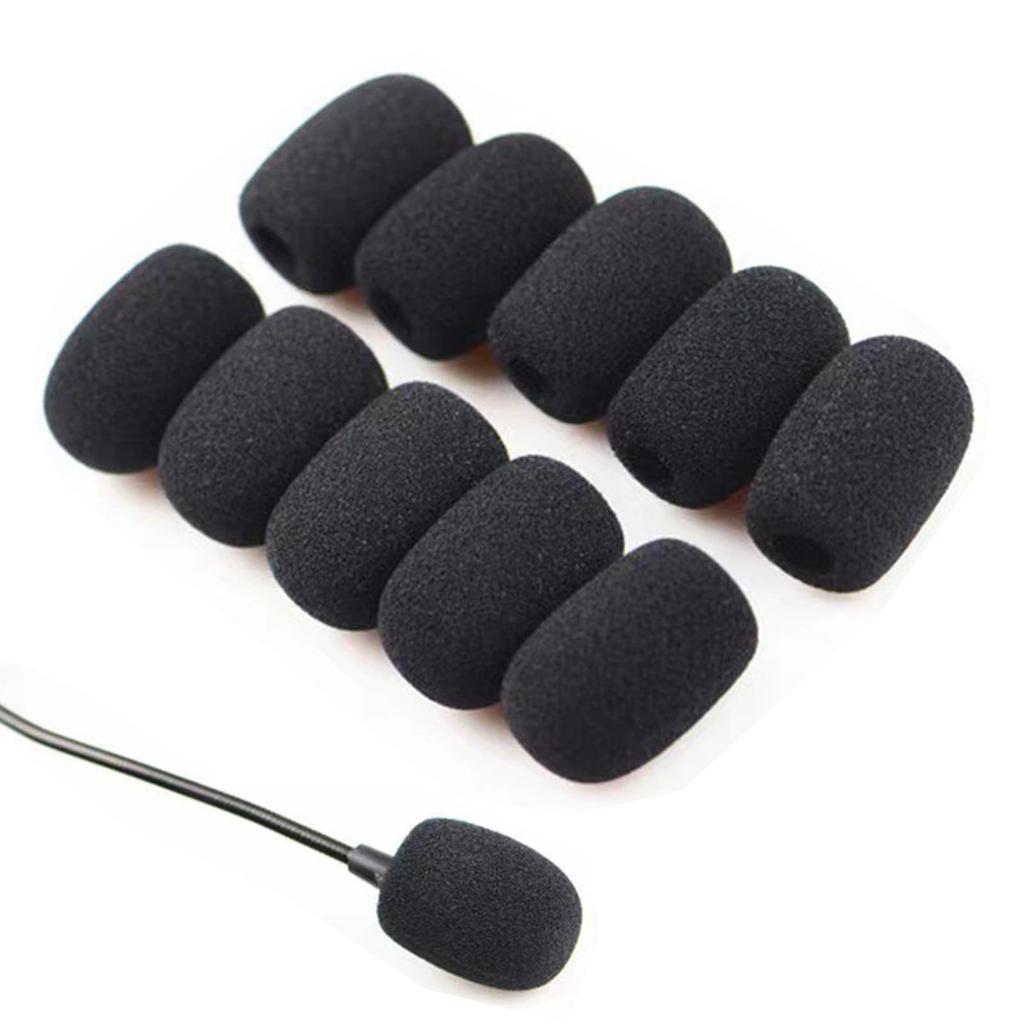 Set of 10 Headset Microphone Sponge 30 x 8mm Replacement Intercom Microphone Cover Headphone Windshield Noise Prevention Black Windscreen