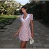 Damen bedrucktes Kragen Puffärmel Kleid mit gedruckter Dekoration für Sommer Neue Kleidung Slim Fit Temperament Damen Taillenbetonendes kurzes Kleid