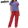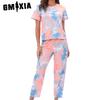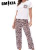 GMXIA Damen Leopardendruck Batik Loungewear Pyjama Zweiteiler Kurzarm Lange Hose Set