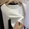 2025 H/W Damen Ripp Langarmshirt - Tiefer Rundhalsausschnitt Schlüsselbein-Stil, Unifarbe, Vielseitiges Oberteil
