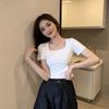 Dieses Damen Sommer Slim Fit Crop Top ist aus luxuriösem Kunstseidenmaterial gefertigt und bietet ein glattes und bequemes Tragegefühl.. Entworfen mit einem modernen Slim-Fit, verfügt es über einen stilvollen eckigen Ausschnitt, der die Schultern betont, während die kurzen Ärmel es perfekt für wärmeres Wetter machen.. Das einfarbige Muster verleiht einen Hauch von Raffinesse und macht es zu einer vielseitigen Ergänzung für jede Sommergarderobe.