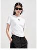 MO*CO Damen 2025 Frühling/Sommer Gummi-Patch Cropped T-Shirt - Kurzarm, Rundhalsausschnitt, Geraffter gebogener Saum