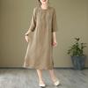Echter Schuss Sommer neue Baumwolle und Leinen literarisch und retro Schwerindustrie Stickerei Übergröße Rundhals Kurzarmkleid Damen