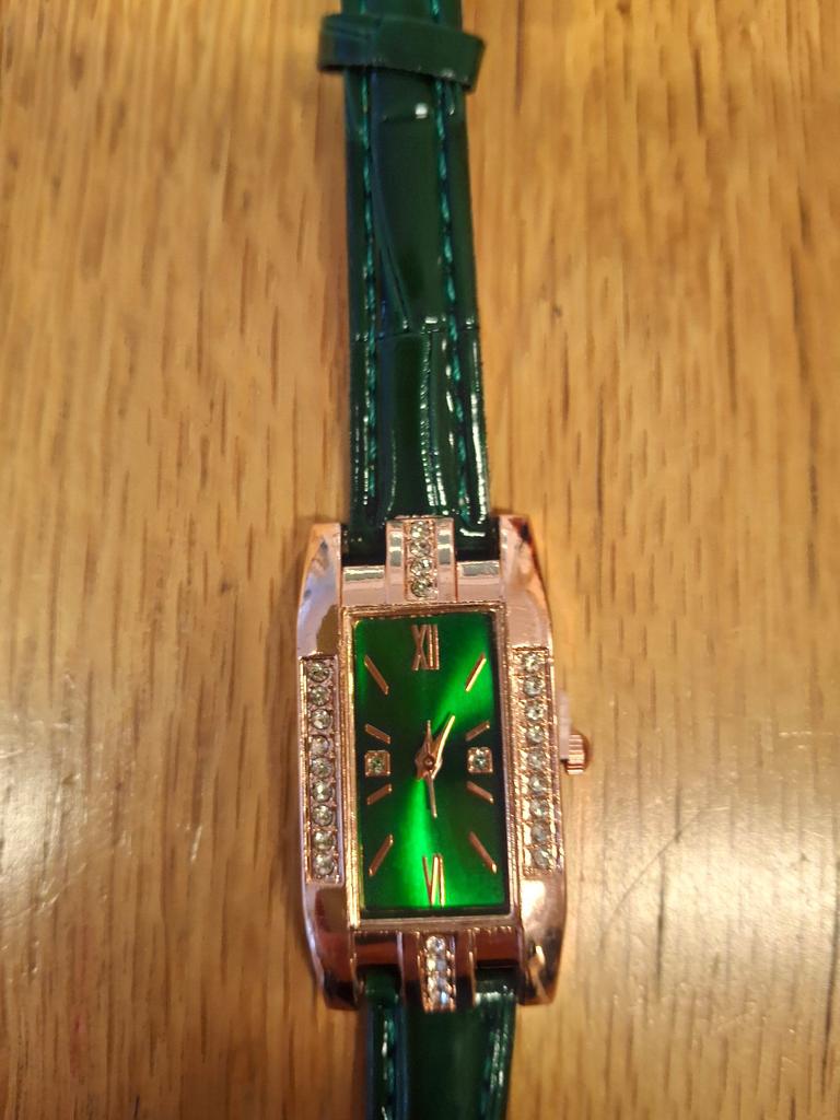 Die Uhr entspricht dem Bestellfoto. Leuchtend grünes Armband und Zifferblatt. Das Armband ist nicht breit. Sehen nicht schlecht aus.