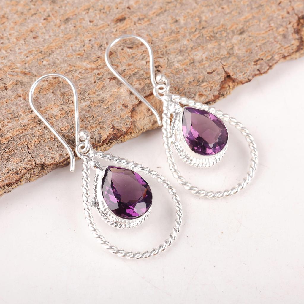 Amethyst Edelstein Schmuck, 925 Massiv Sterlingsilber Ohrringe, Handgefertigte Wunderschöne Silberohrringe für Thanksgiving Geschenk