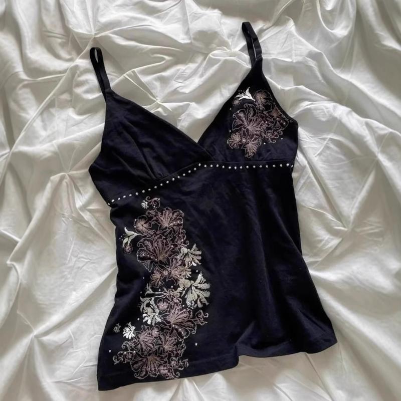 Europäisches und amerikanisches Sommer-Blumendruck V-Ausschnitt Slim Fit rückenfreies Oberteil