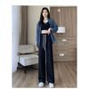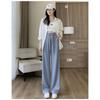 Eisseide Weitbeinige Hose für Damen im Sommer Dünn Hohe Taille Drapierend Gerade Locker Lässig Kleine Sommer Karo Hose
