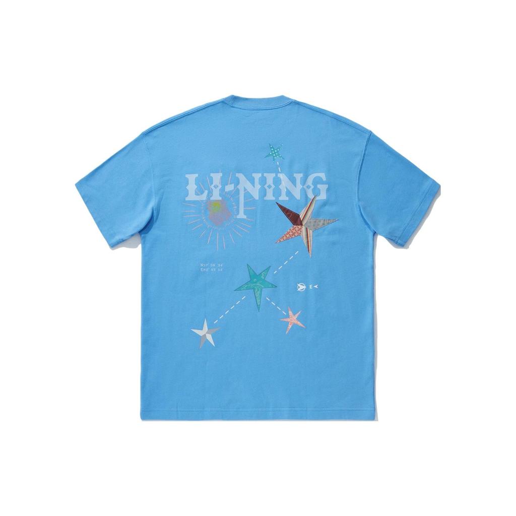 Li Ning Reignite Series Sternenmuster Rundhals Casual Kurzarm T-Shirt Unisex T-Shirts Ölfarben-Blau AHSU245-3