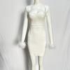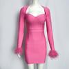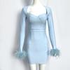 Neues Feder Langarm Europäische und Amerikanische Mode Bandage Abendkleid