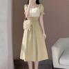 Damen Sommer Französisch Inspiriertes Schlankmachendes Taillenlanges Kleid