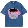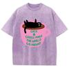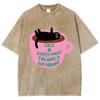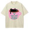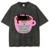 Rosa Tasse Schwarzer Cartoon-Katzen-Print Damen T-Shirt Sommer Bequem Süß Kurzarm Y2K Liebling Lässig Top