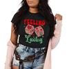 Feeling Lucky Baumwolle Gewaschene T-Shirts Damen Poker Würfel Bedruckte Oberteile Bequeme O-Ausschnitt Oversize T-Shirts Damen Kleidung