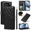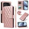 For iPhone 17 Pro Wallet Case Rhombus Leather Phone Cover with Strap