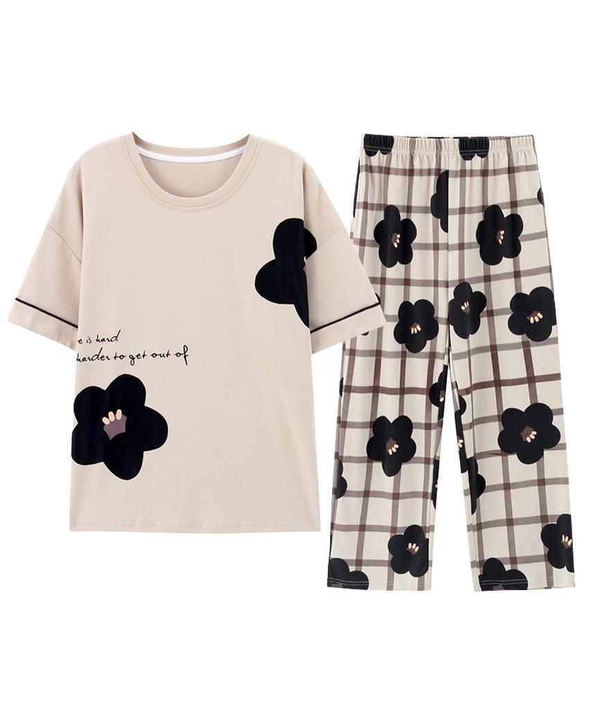 Top and Bottom Loose Sweat Quick Gentle on the Skin [HOOFESAN] Women's Pajamas, Loungewear, Summer, Loungewear, 100% Cotton, Set, Gift, Fit,
