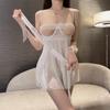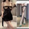Sexy pure desire high sense hollow lace eye mask splicing mesh dress thin perspective low chest suspender short skirt