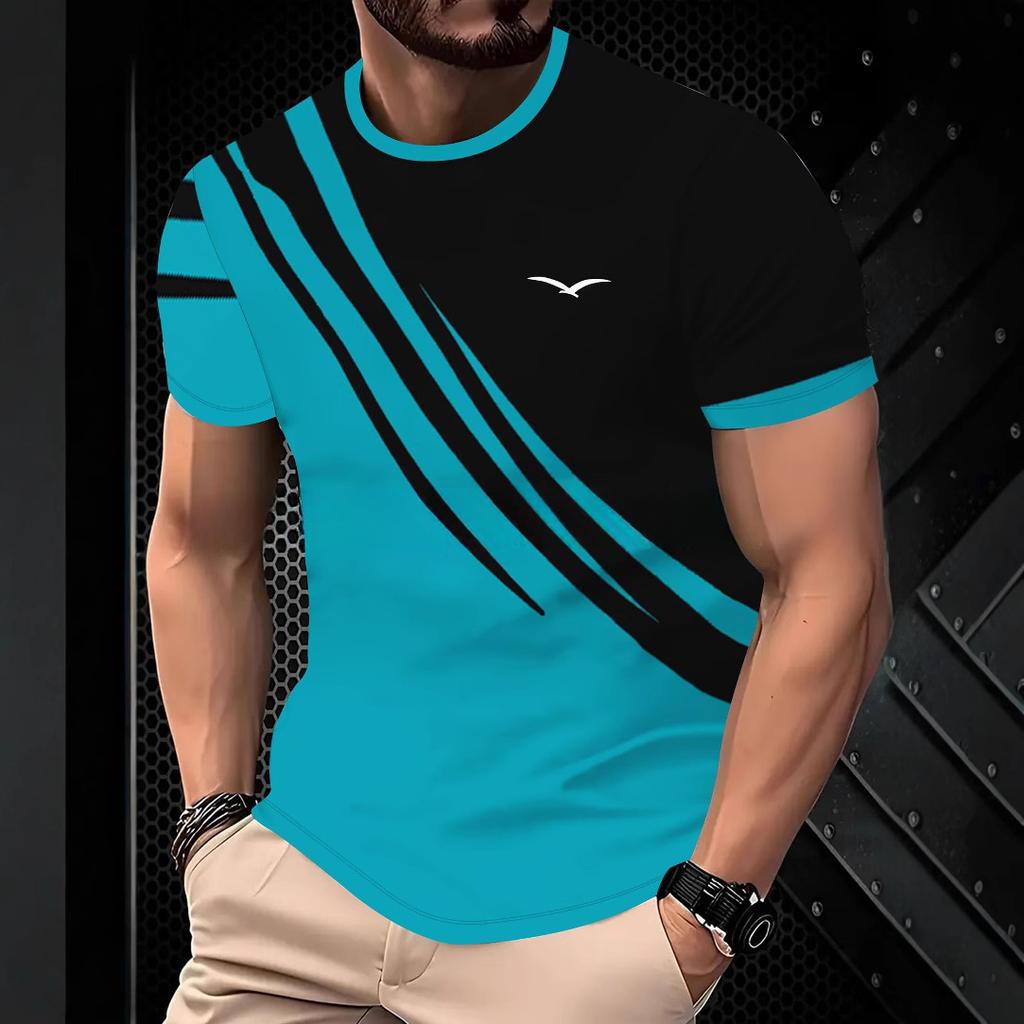 Sommer Rundhals 3D Streifenmuster Print Top Modische Lässige Kurzarm Herren T-Shirts