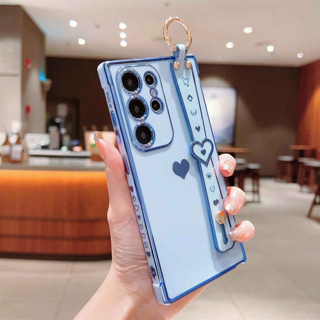 Für Samsung Galaxy S24 Ultra Hülle Liebesherzen Design TPU Handyhülle Armband Ständer