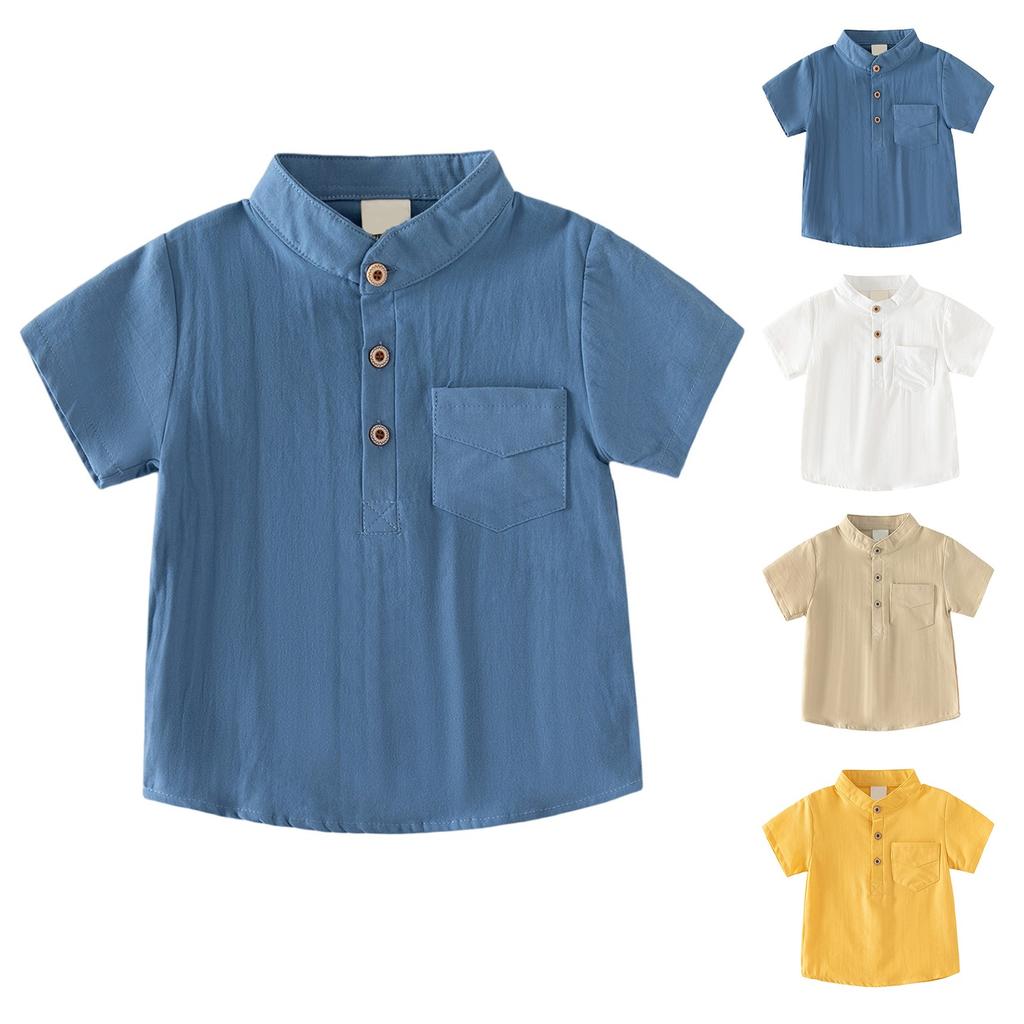 Sommer Outdoor Kinder Stehkragen Kurzarm Mode Lässig Hautfreundlich Bequem Saugfähig Baumwollhemd