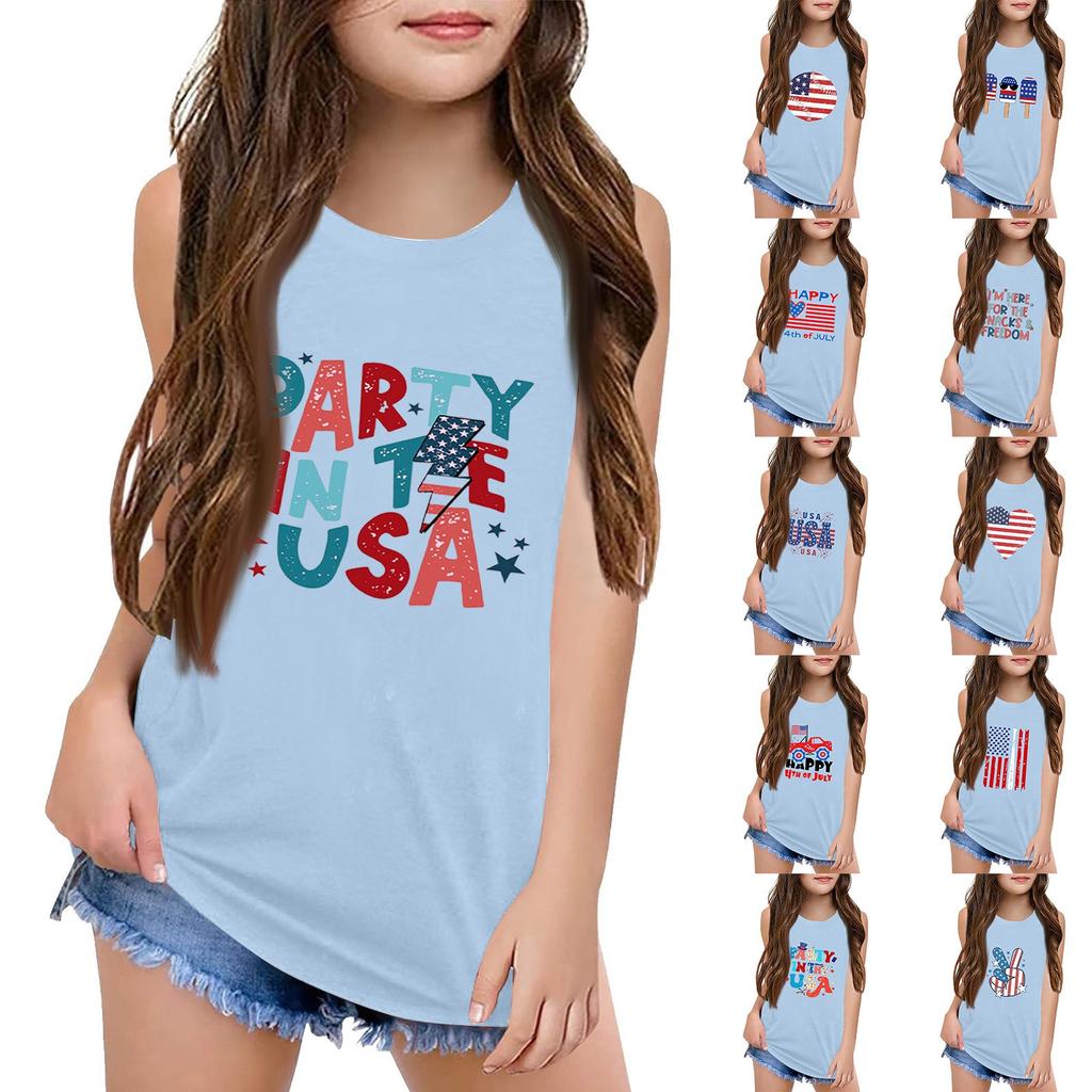 Mädchen Kinder Sommer Rundhals Ärmellose Shirts Tanktops