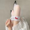 Weiße Strümpfe reine Spitze Schleife Kniestrümpfe sexy kontrastierende Oberschenkel roter Rand schwarze Seide JK lange Socken