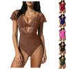 Sexy mit 3D-Blumengürtel Bandeau Damen Bademode Einteiliger Badeanzug Weiblich Hochbeinausschnitt Monokini Badegast Badeanzug Schwimmen K5603