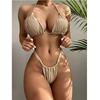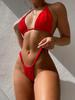 Verleihen Sie Ihrem Strand-Look mit dieser verführerischen zweiteiligen Bikini-Bademode, die für Frauen im Jahr 2023 entworfen wurde, das gewisse Etwas.. Dieser Bikini zeichnet sich durch ein schlichtes und verführerisches Unimuster aus, gefertigt aus hochwertigem Polyester für eine bequeme und schmeichelhafte Passform.. Perfekt sowohl für europäische als auch amerikanische Stile, sorgt es für einen stilvollen und selbstbewussten Look für jedes Abenteuer am Meer oder zum Entspannen am Pool.