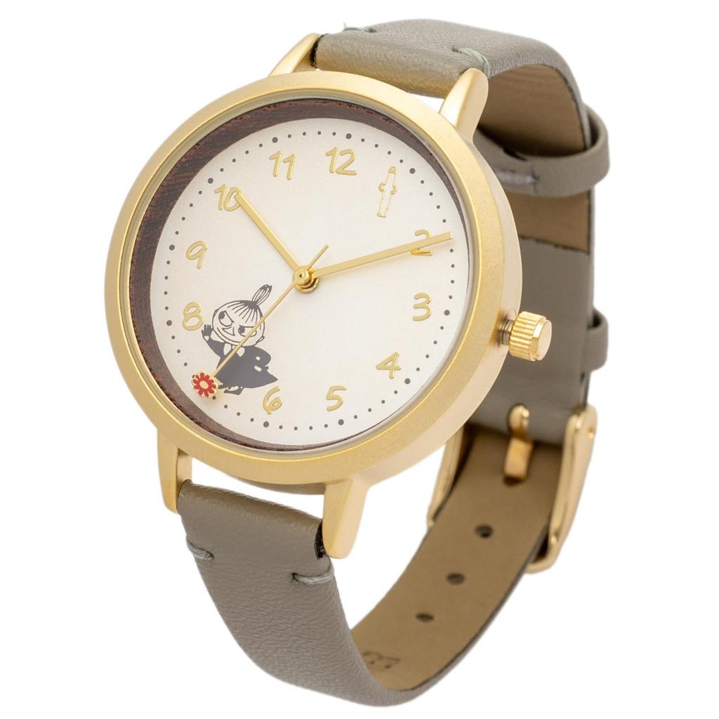 Analog Watch with Leather Genuine Wood Moomin Wood Leather Watch Y Little Gray [Fieldwork] Women's Strap, Leather, Pattern, My, White, MOM017-1,