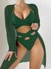 Wir stellen einen schicken und stilvollen dreiteiligen Badeanzug vor, der speziell für Frauen entworfen wurde.. Dieses verführerische Ensemble umfasst einen unifarbenen Bikini-Überwurf aus hochwertigem Nylon, der sowohl Komfort als auch Langlebigkeit gewährleistet.. Das Design besticht durch einen raffinierten Mesh-Überzug, der europäische und amerikanische Modeempfindungen ausstrahlt.. Perfekt, um Eleganz mit einem Hauch von Reiz zu verbinden, ist dieses Badeanzug-Set ideal, um auf jeder Strand- oder Poolparty ein Statement zu setzen.. Es bietet sowohl Vielseitigkeit als auch moderne Anziehungskraft und ist eine unverzichtbare Ergänzung für Ihre Sommergarderobe.