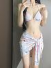 Elevate your beachwear collection with this stunning bikini set designed for women, featuring a sleek minimalist style and a deep V neckline adorned with eye-catching prints. Crafted from high-quality polyester, this bikini ensures comfort and durability for long days in the sun. Complementing the bikini is a sexy cover-up skirt, providing a chic and versatile addition to your seaside wardrobe. Perfect for making a statement by the pool or on the sand, this ensemble beautifully combines elegance with modern sophistication.