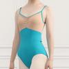 Fushinu Damen Farbblock Geraffte Taille Gymnastiktrikot Ballett Übungskleidung