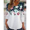 Lebendiges florales 3D-Druck-T-Shirt mit Rundhalsausschnitt und langen Ärmeln, modisches Muster, Damenkleidung, lässige Y2K-Kleidung, Harajuku, Damenkleidung
