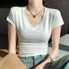 Neue Sommerkleidung Slim-fit V-Ausschnitt Kurzarm T-Shirt für Damen mit vielseitigen Taillenbetonenden Slim High-End Oberteilen Nische