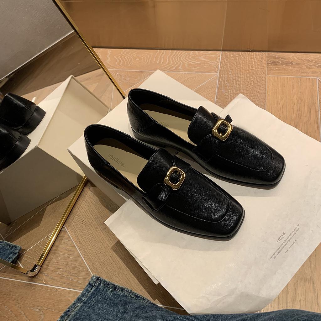 Streng ausgewählte zweite Haare~ Traubenmutter, kleine goldene Schnalle Britische Retro-Vierkantspitze, vielseitige Slipper mit einem Fußpedal für Damen