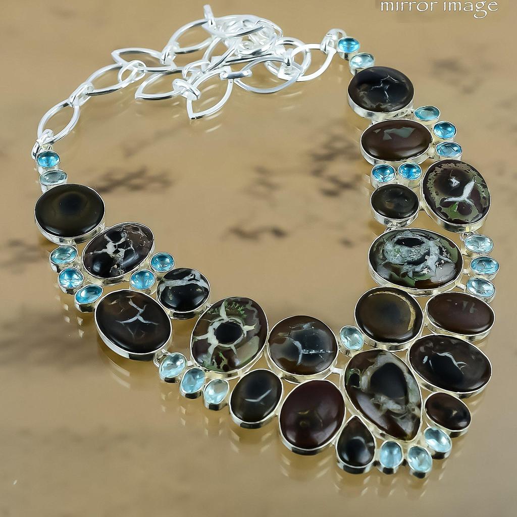 Natürliche marokkanische Schlamm-Krakelee-Fossil-Kette Verstellbare Halskette 925 Silber Für Damen