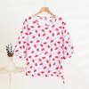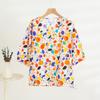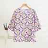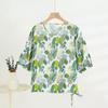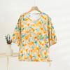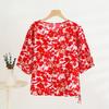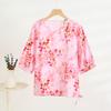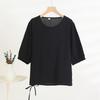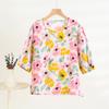 T-Shirt mit halblangen Ärmeln, Süßer Blumendruck, Stilvolles Oberteil mit Kordelzug, Sommerlich dünner Überwurf in Übergröße