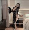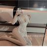 Sex Underwear Medium Sleeve Thin Lace Deep V Sexy Split Fork Empty Lace Perspective