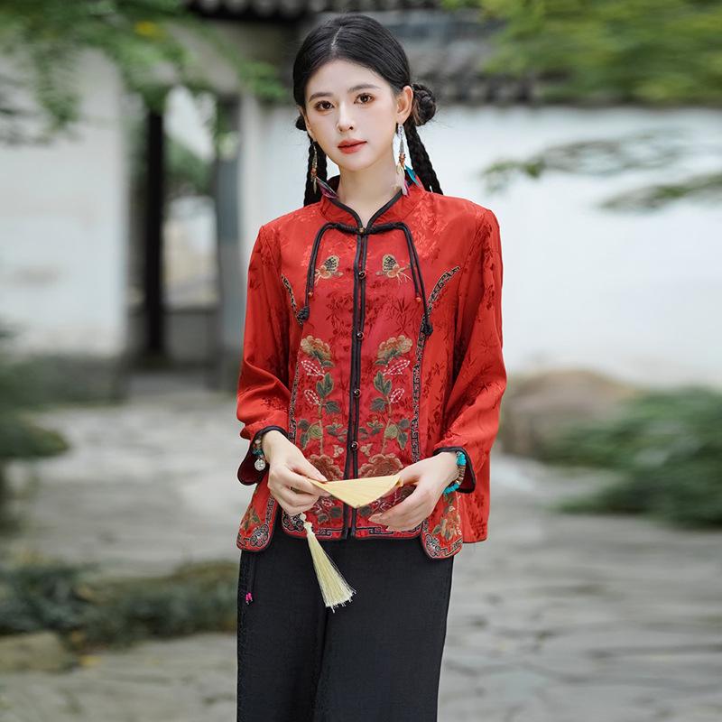 Herbst Retro Chinesischer Froschknopf Bestickte Langarm Tang Anzug Jacke für Damen.