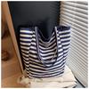 Doppelseitige gestreifte Canvas-Tasche für Damen mit großem Fassungsvermögen, lässige Tragetasche, Studenten-Freizeit-Einkaufstasche