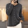Frühlings- und Herbst-Strickpullover für Damen, einfarbig, Strickjacke, Kapuzenpullover, Langarm-Top