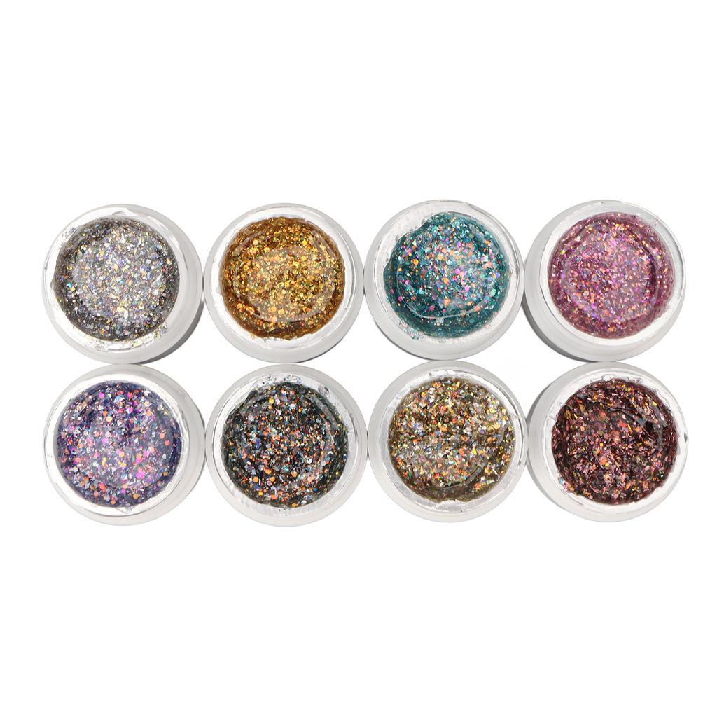 Holographisches Reflektierendes Glitzer Gel 8 Farben Funkelnd Glänzend Blitzend UV LED Nagellack Set