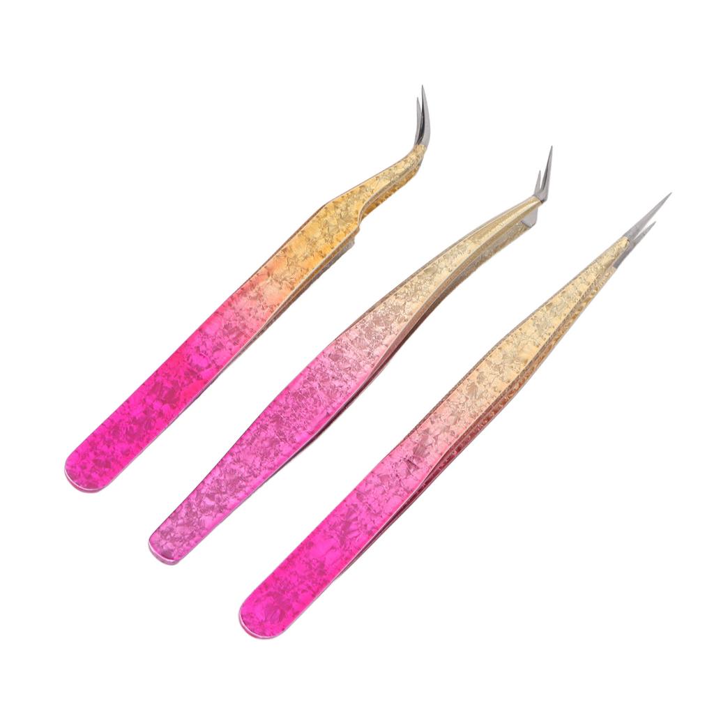 3pcs Nail Art Tweezer Stainless Steel Straight Bend Tips Manicure Rhinestone Nipper Gradient Color