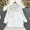 Frühling und Herbst Damen Polokragen Blumen Langarm Lose Einreihig Einfarbig Hemd Freizeitkleidung