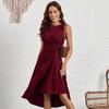Sommer Damenkleid Sommermode Ärmellos Einfarbig A-Linie Knitterkleider