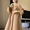 Damenwollmantel doppelseitig mit Bindegürtel: Herbst/Winter, 100% Wolle, Überknielang, Lockere Passform