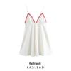 Spring 2025 Women's European & American Style Color Block V-Neck Spaghetti Strap Dress