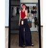 Women's Dark Blue Retro Wide-Leg High Waist Jeans - Autumn Loose Fit, Slimming Straight Pants