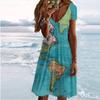 Sommermode Damen V-Ausschnitt Kurzarm Schönes Schmetterlingsmuster Kleid Sexy Kurzer Rock Kleider
