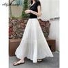 Fairycore Sommer Damen Midi Plisseerock Hohe Taille Schwarz Weiß Beige Lila Fee Rüschenrock Elegant Feminin Damen Basic Röcke